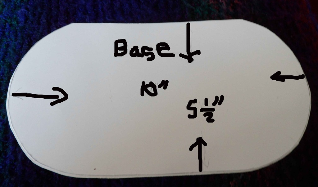 Crochet base: Chain 30, 2dc in second chain from hook, 1dc in each chain to end 3dc in last chain, turn and workup the other side of chain, slip stitch into 1stdc